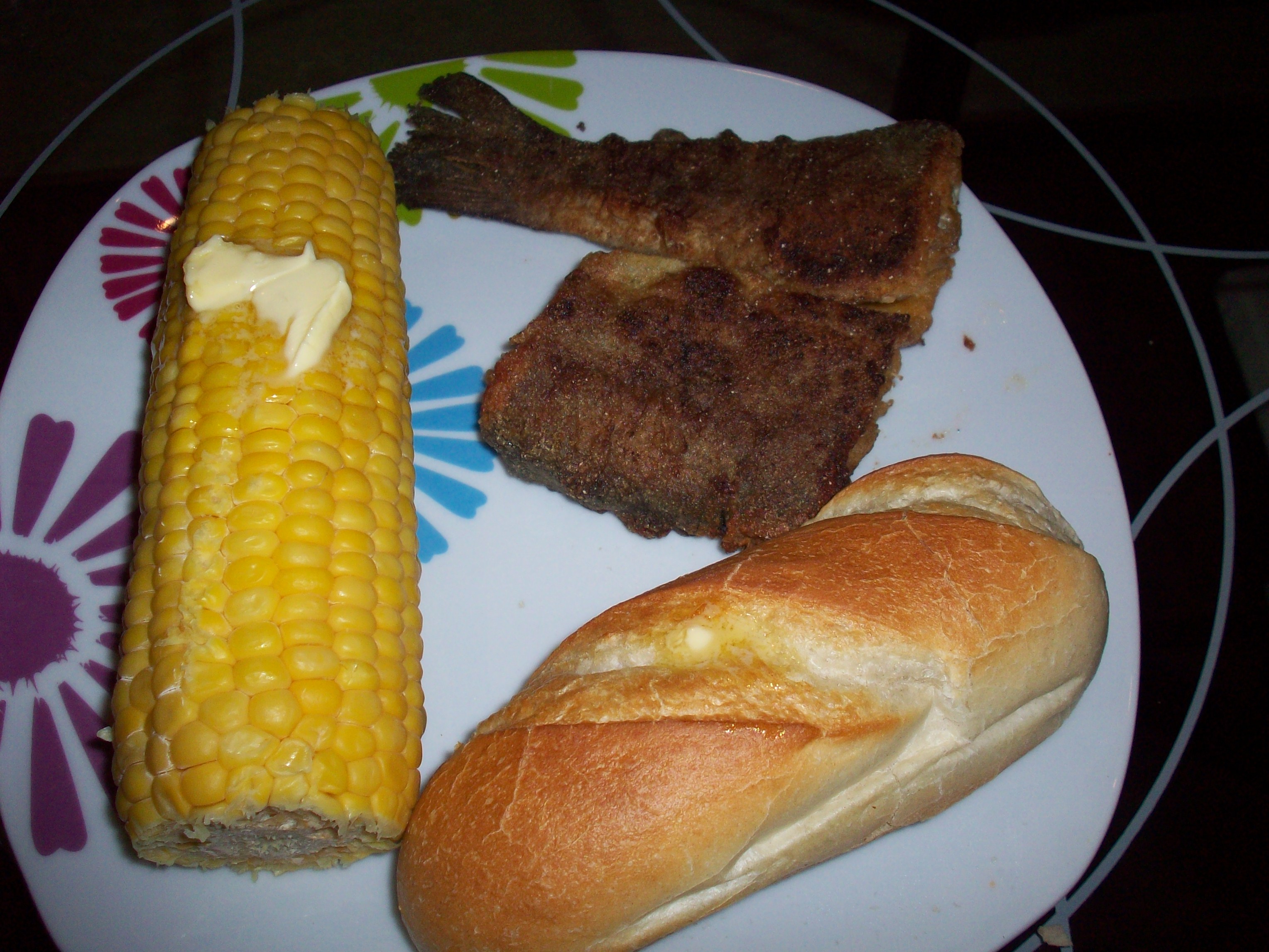 So I decided to make use of some whole rainbow trout I came by at the supermarket to make my own fish fry, complete with farm fresh corn on the cob.