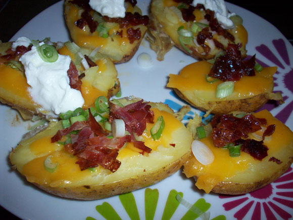 Since it’s a poorly kept secret just how much I love potatoes I usually take any opportunity I can to whip them up in any form. For the recent German on German soccer match I decided to go with good old-fashioned potato skins.