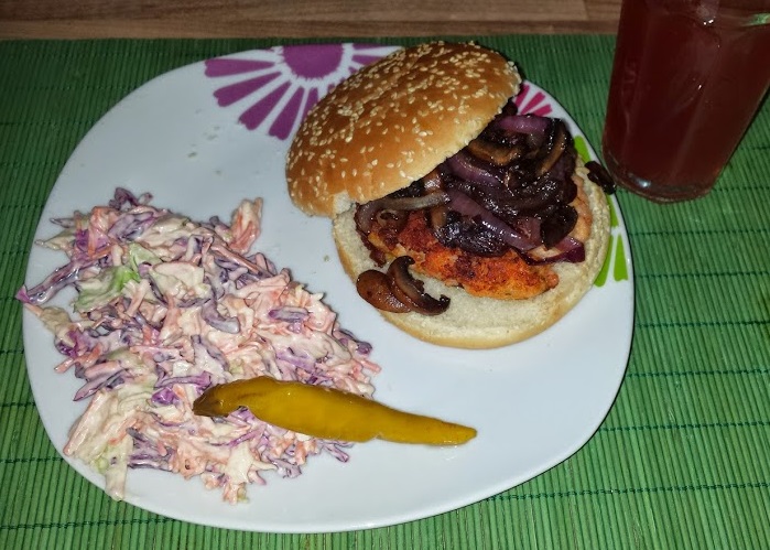 Eat with: A pale ale or pilsner. But since it was so hot…I washed it down with iced tea.