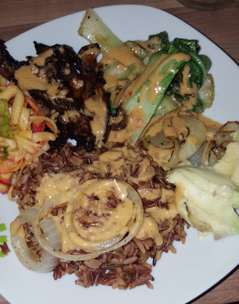 If you want to know the truth, the tahini dressing is what turned this plant based dish from simply good to downright delicious! And it’s super easy to make with just a few ingredients: tahini, soy sauce, sriracha, garlic & ginger.