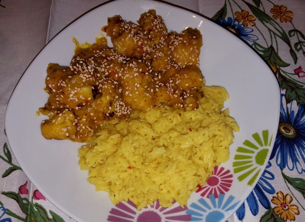 So I came across a Sticky Pineapple Cauliflower recipe on Chocolate Covered Katie and I wanted to try it out so bad but before I had the chance, the hubs beat me to it! I was (not so secretly) pleased about it because he’s much better at adhering to set recipes than I am, and he’s much better at the whole presentation aspect which makes for better pictures.