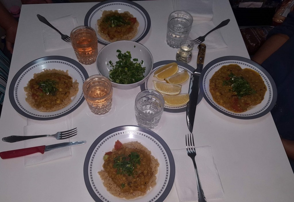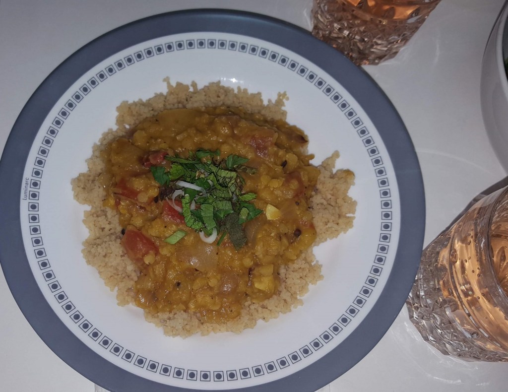 I served it here with couscous because couscous is delicious but also because we had a rice dish the day before and I didn’t want a repeat. And because I didn’t have any suitable naan-like bread handy.