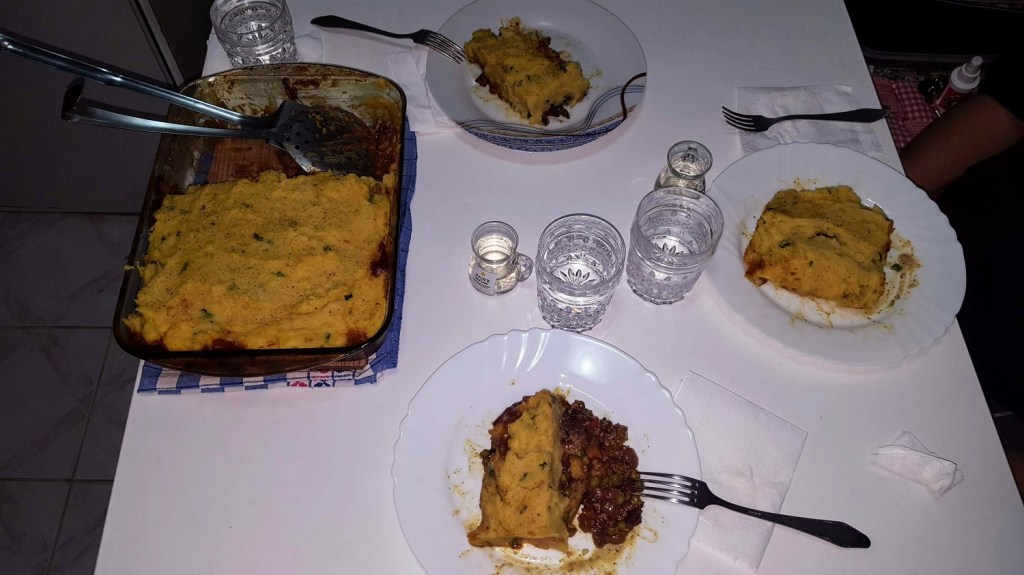 Of course we enjoyed it with a shot (or two) of Tuica, you know, just in case we didn’t warm up enough from the cottage pie!