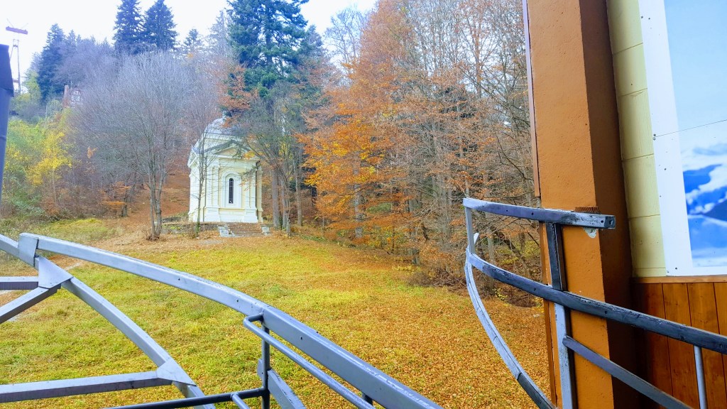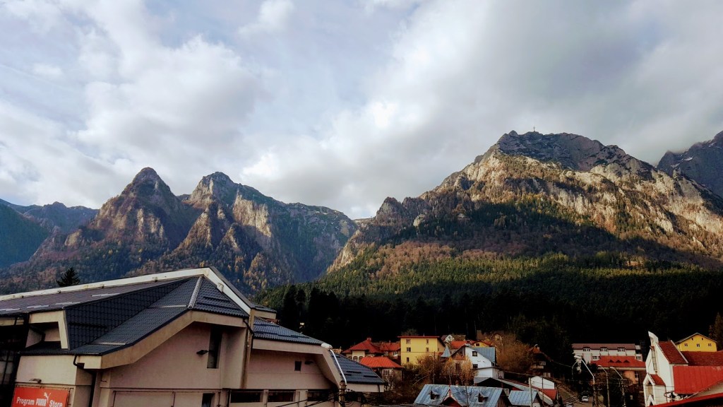 Busteni is a small mountain town in Prahova County, Romania with some amazing scenery and a gondola from which you can see it all. This place was gorgeous even though it was just a tad too late to get the full beauty of the autumn colors. And even though it was too windy to ride this particular gondola and even though I moaned and groaned about it, a ride on another gondola much later in the day proved the wisdom of their decision.