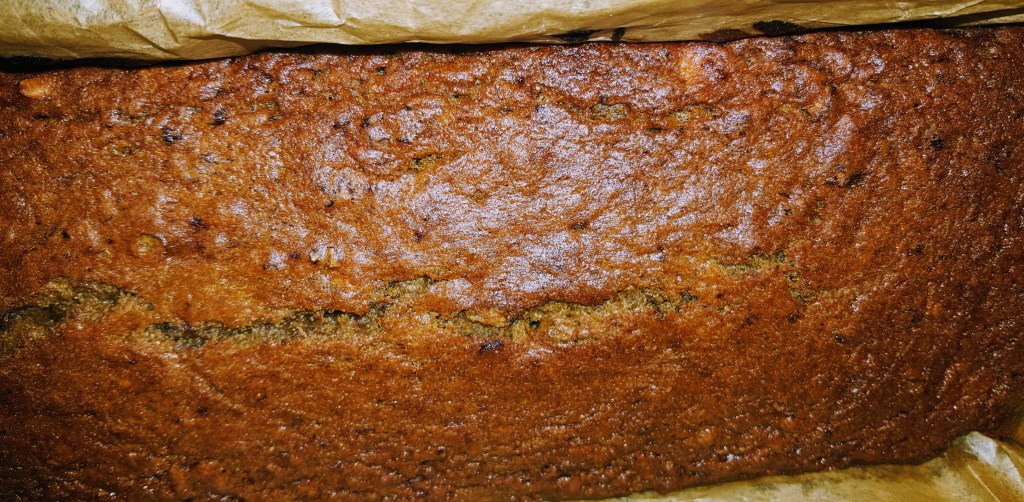 As you can see it was incredibly long but my impromptu changes still filled out the pan nicely. And adding parchment paper to the pan meant it was easy to take out and slice for serving.