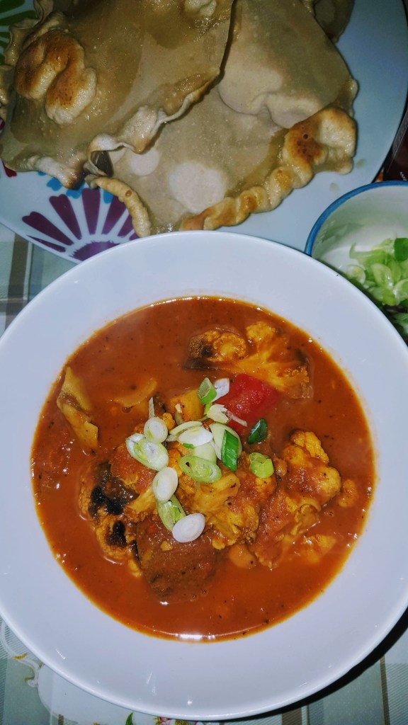 I made the mistake of buying store bought papadums and they were not very good. I forgot how oily they can be and I didn’t use enough oil so they ended up half cripsy & oily and half crunchy but not in a good way. I should have just skipped the papadums and added rice on the side.