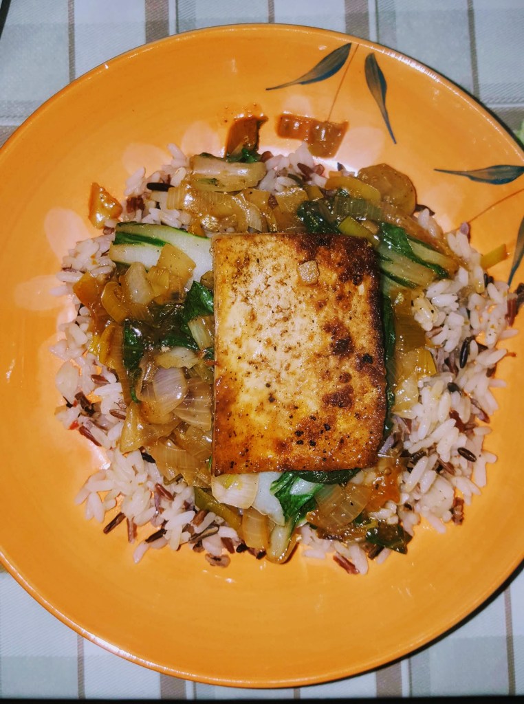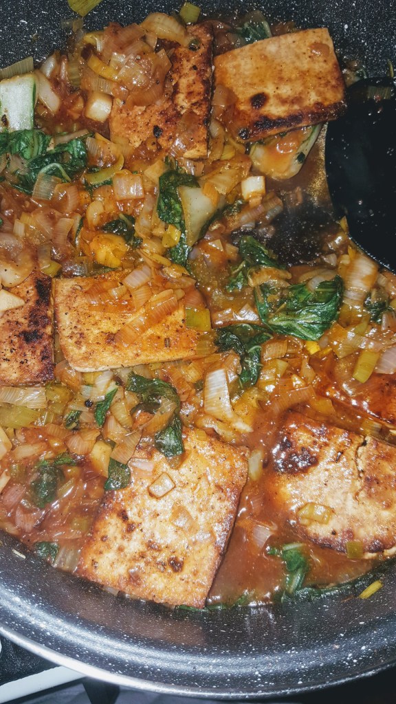 That’s why I am obsessed with cooking shows, both on television and YouTube. And trust me, I’m not one of those purists who refuses to watch cooking videos made with animal products, I watch them for ideas on flavors and seasoning, ALWAYS with a mind towards veganizing. So when I came across this braised chicken dish all I could think of was braised tofu.