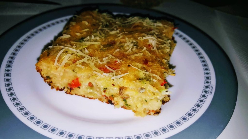 Maybe there’s something about pasta dishes, because my husband made a sort of mac & cheese pie, using these “macheroni” that are long like spaghetti but they’re hollow so when they expand after cooking they are gigantic. He tried to tame them and with the help of cumin, turmeric, smoky paprika, tofu in salty water (called saramura in Romanian) it was pretty tasty.