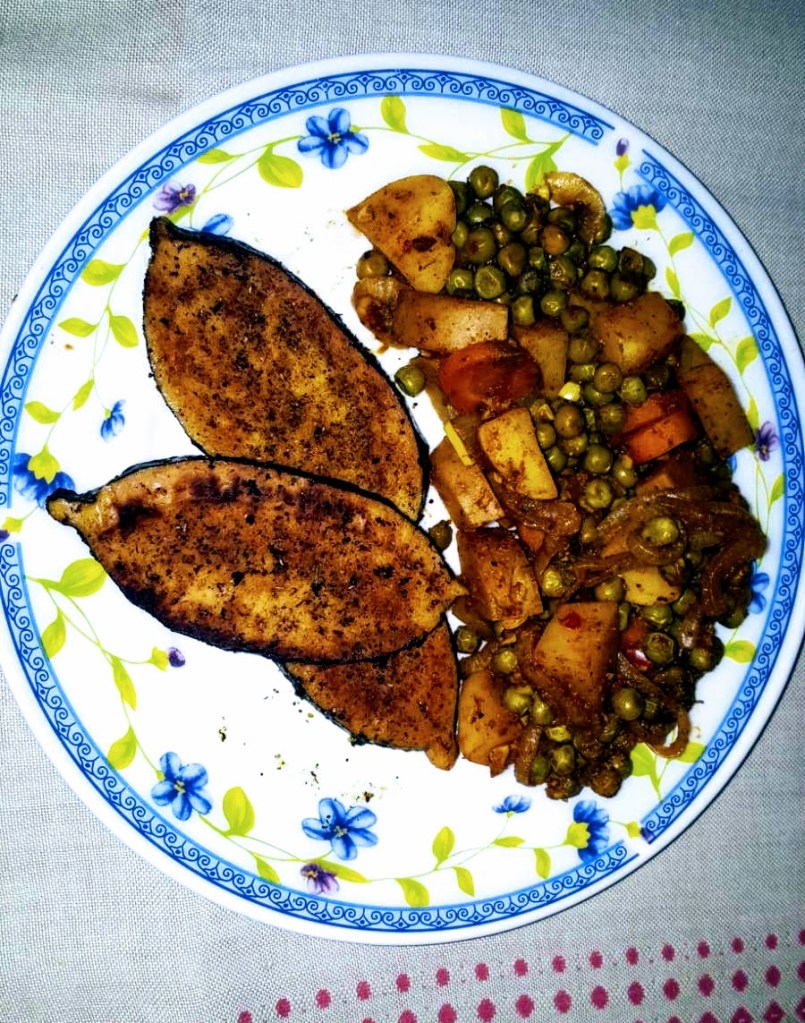 The mixed curried vegetables helped mask the fishy scent, which weirdly disappeared after about five minutes. Too bad my brain couldn’t erase the smell.