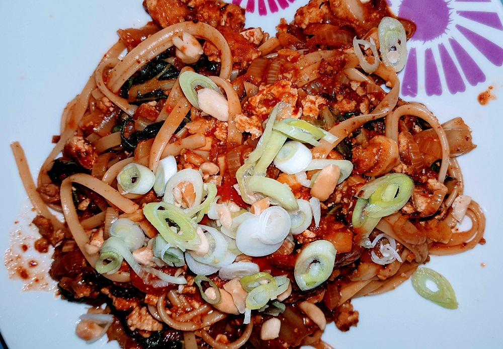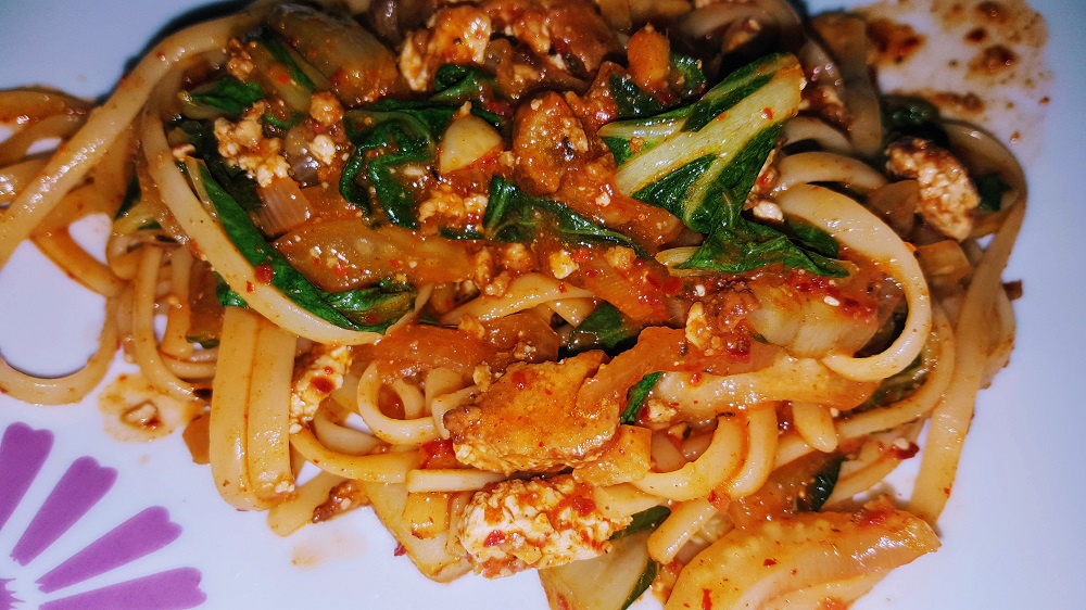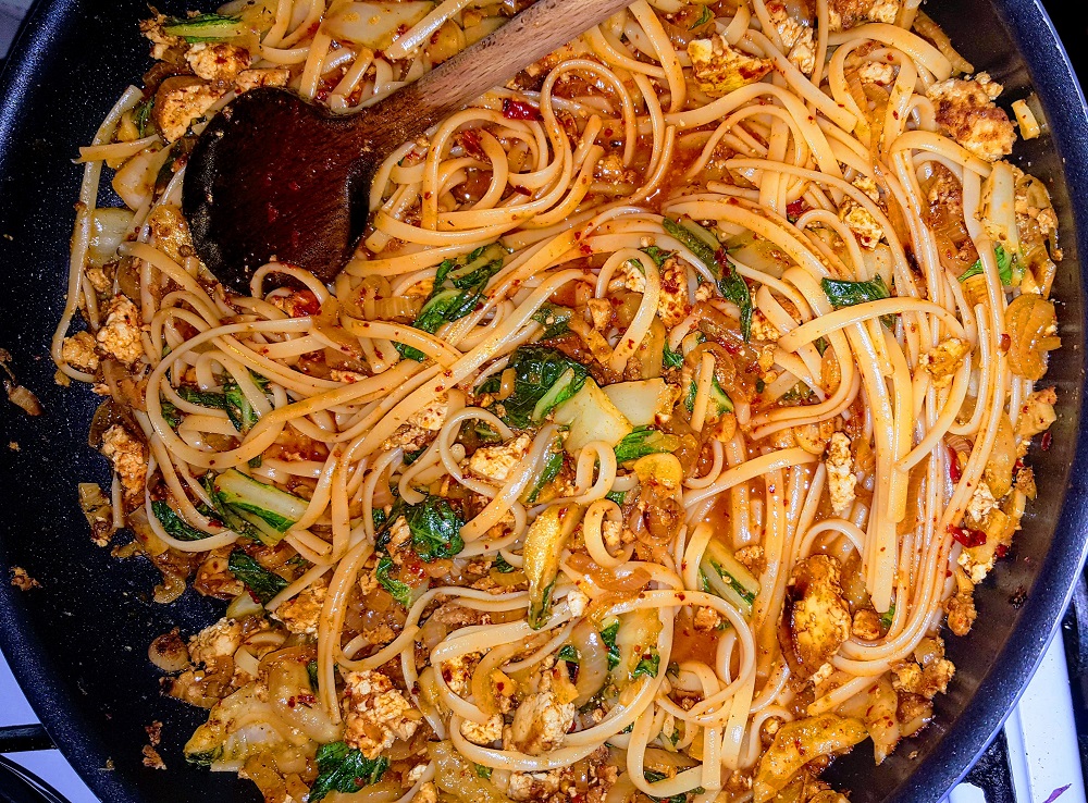 I would have loved to find a better noodle than the Bavete pasta I ended up using, but the only supermarket in town that has a wide selection of Asian noodles had…none. Okay well not none, but there was a basic vermicelli noodle and glass noodles, which have their place and time. It just wasn’t this day and with this vegan Dandan dish.
