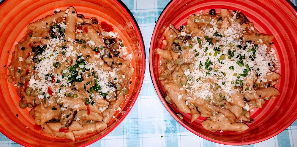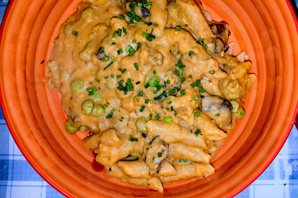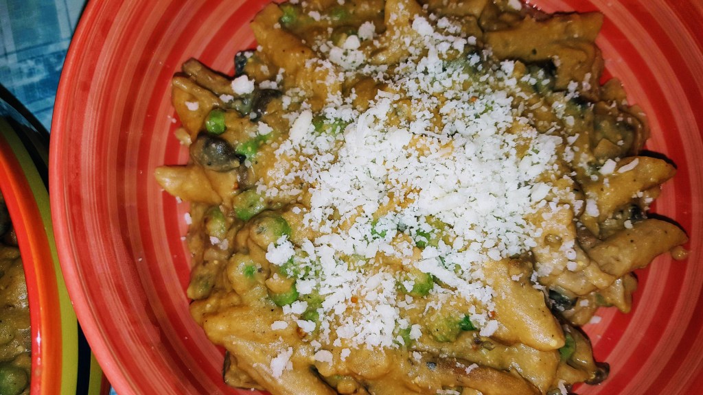 Mushroom & Pea Penne w/Chickpea Alfredo