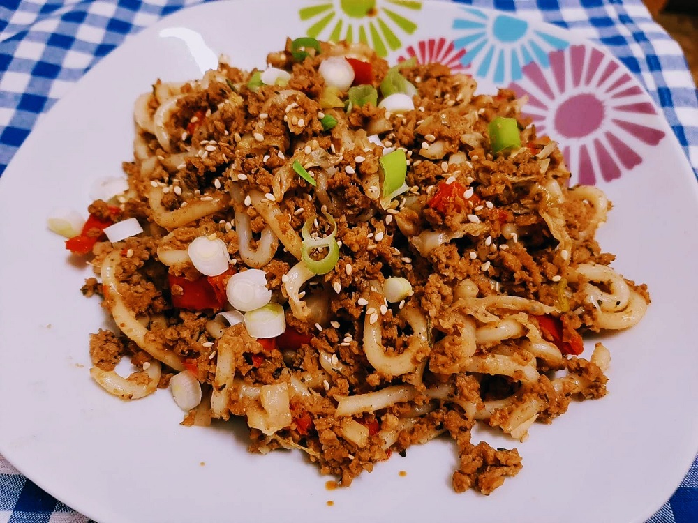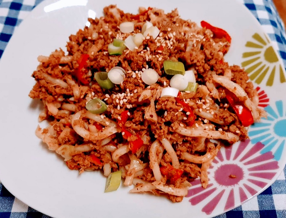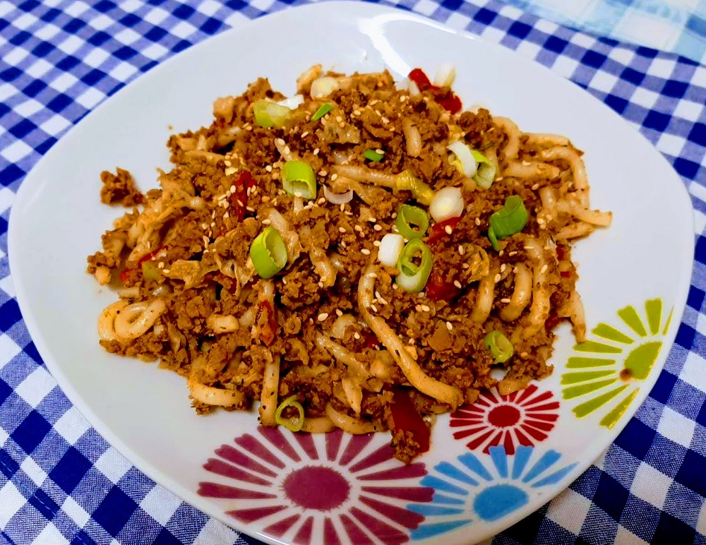 One of the things I appreciate about our Tokyo Midnight Diner meals is that I get to see my husband’s take on some of my favorite dishes or on other recipes I’ve been wanting to try but haven’t gotten around to for whatever reason. This fiery udon noodles was one such dish. I asked for Dan Dan noodles, which became a new favorite of mine in 2019 when I decided to kick up my Asian cuisine knowledge to about a thousand. Anyway, I asked for Dan Dan noodles and this was his interpretation of the dish.
