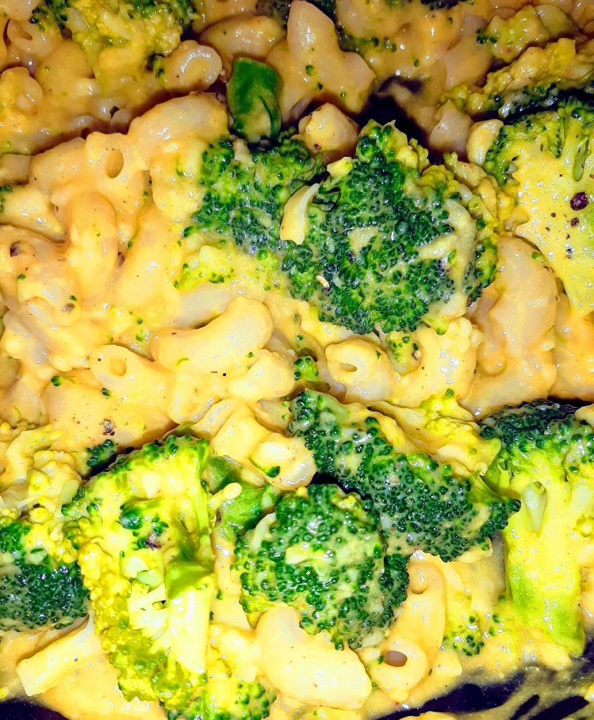 Toss the pasta, cheese and broccoli together and pop it in a 400F/200C oven for 17-20 minutes and after a brief cooling period, you’re good to chow down.