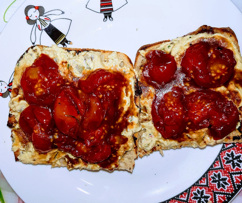 I smashed the tomatoes a little and poured some balsamic vinegar on top and that was it.