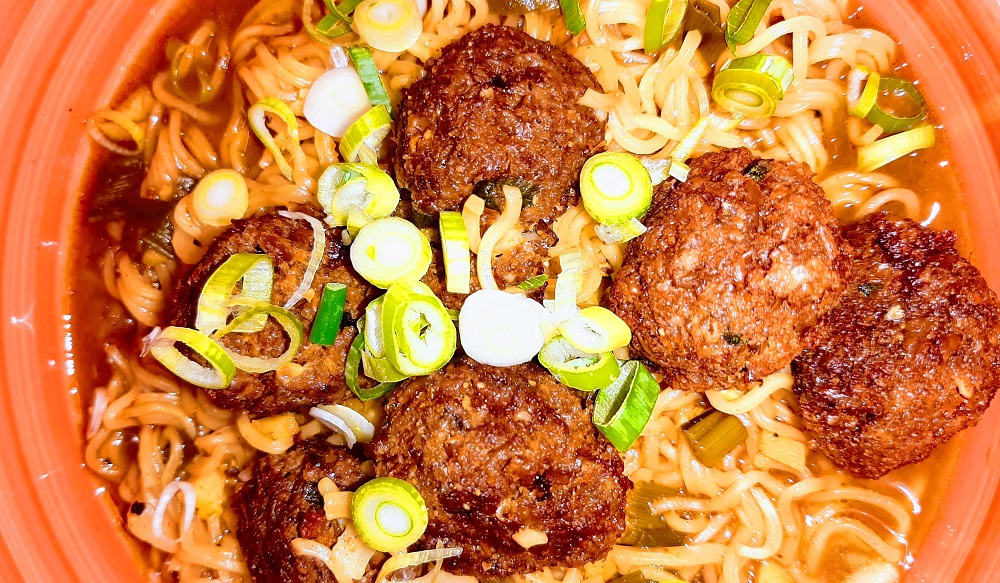 Beyond Meat is only one of two vegan meat alternatives that are available to me here in Romania, the other is a local brand, Verdino and they only make mici, deli slices and salami. That made it pretty easy to use the word ‘meatball’ and have it accurately apply. But that’s enough about the name of this dish, right? Let’s get down this incredibly delicious vegan noodle recipe.