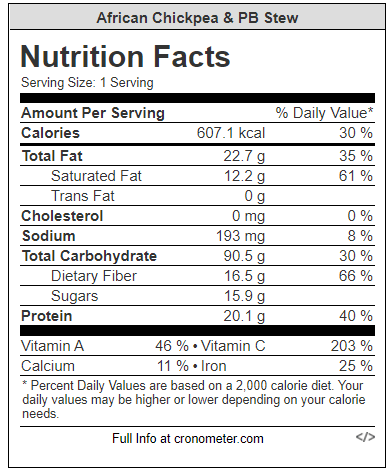 African Inspired Vegan Chickpea & Peanut Butter Stew