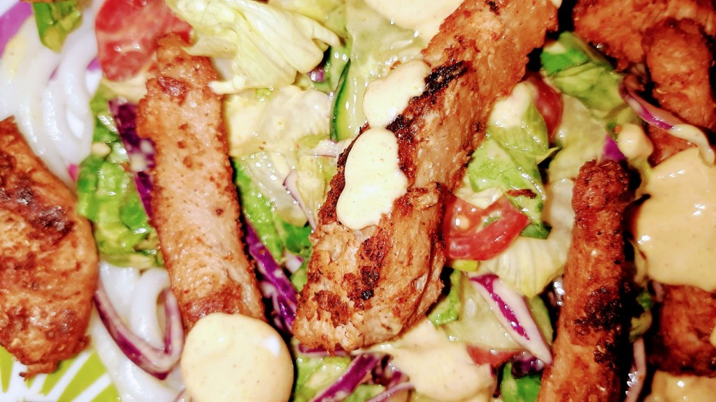 Feeling too lazy to make a big ol’ dinner? Mix your lettuce with some shredded cabbage to fill you up and toss in fifty grams of cooked tofu or TVP and you’ve got a vegan chicken salad that will satisfy your appetite.