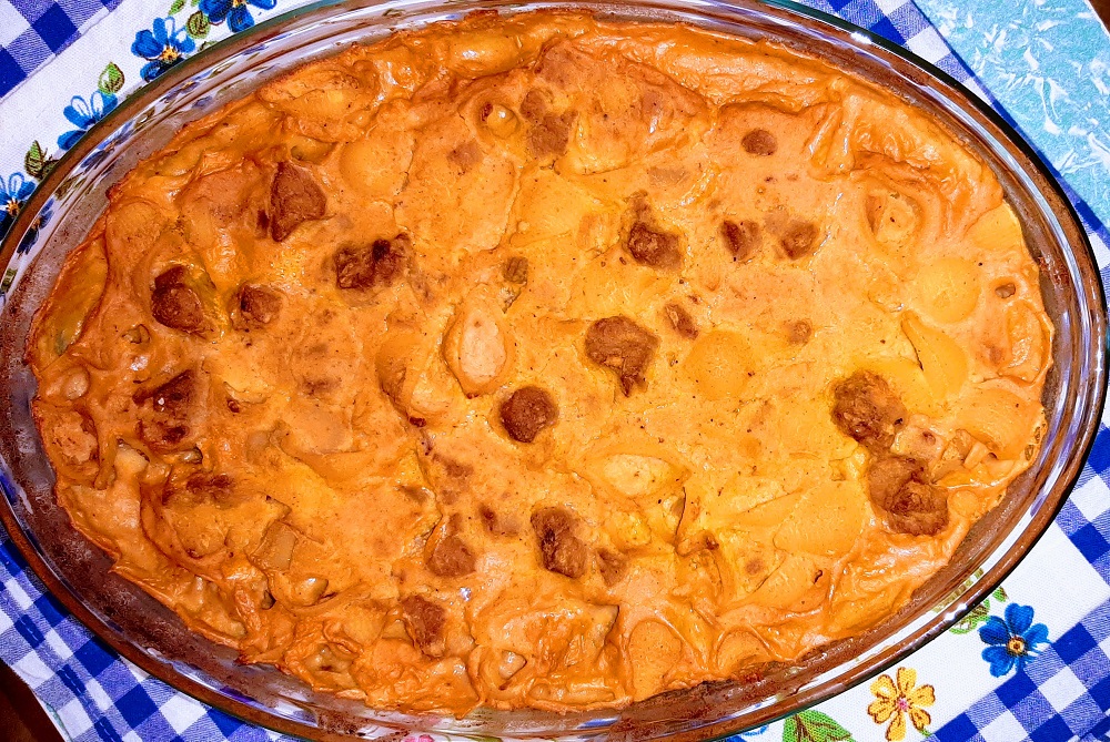Toss with cooked pasta and cooked tofu/soy and place into a casserole dish, cooking 15-30 minutes or until the vegan cheese sauce is thick and creamy and gooey.