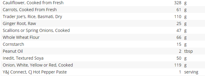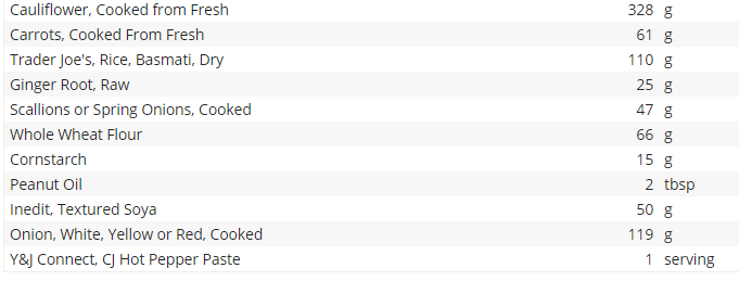 Let’s start with the ingredients, which I cut & pasted below from Cronometer.com. If you aren’t tracking your calories or if you’re in search of an efficient way to so, I highly recommend it. And NO, unfortunately, I am not being paid or getting a free membership to say such kind things.