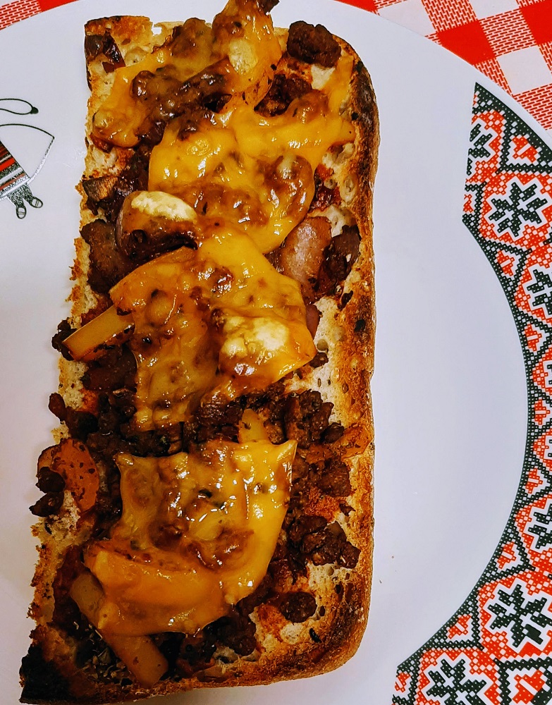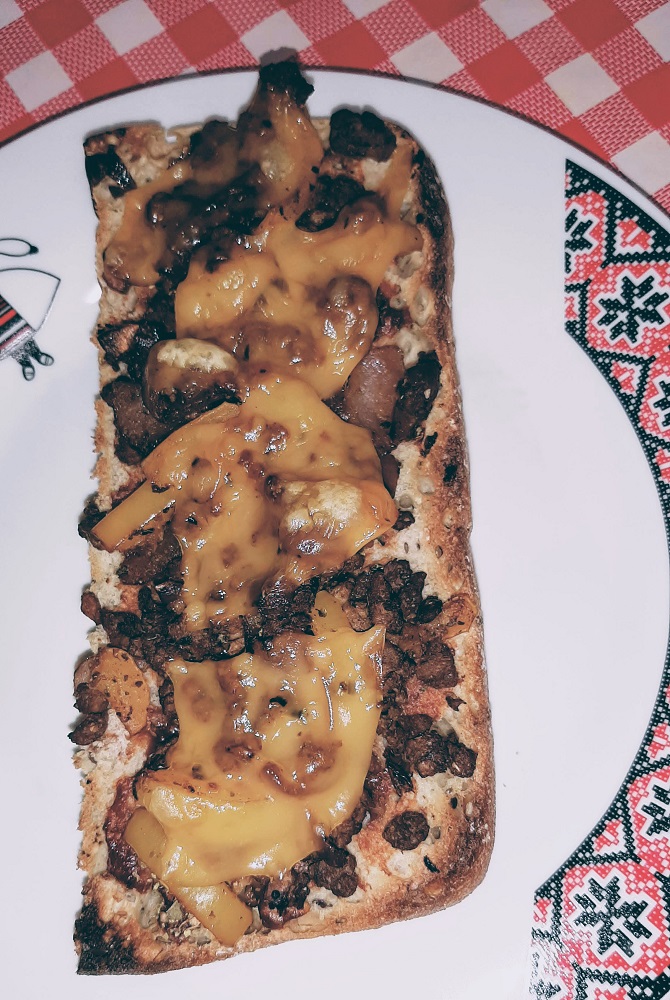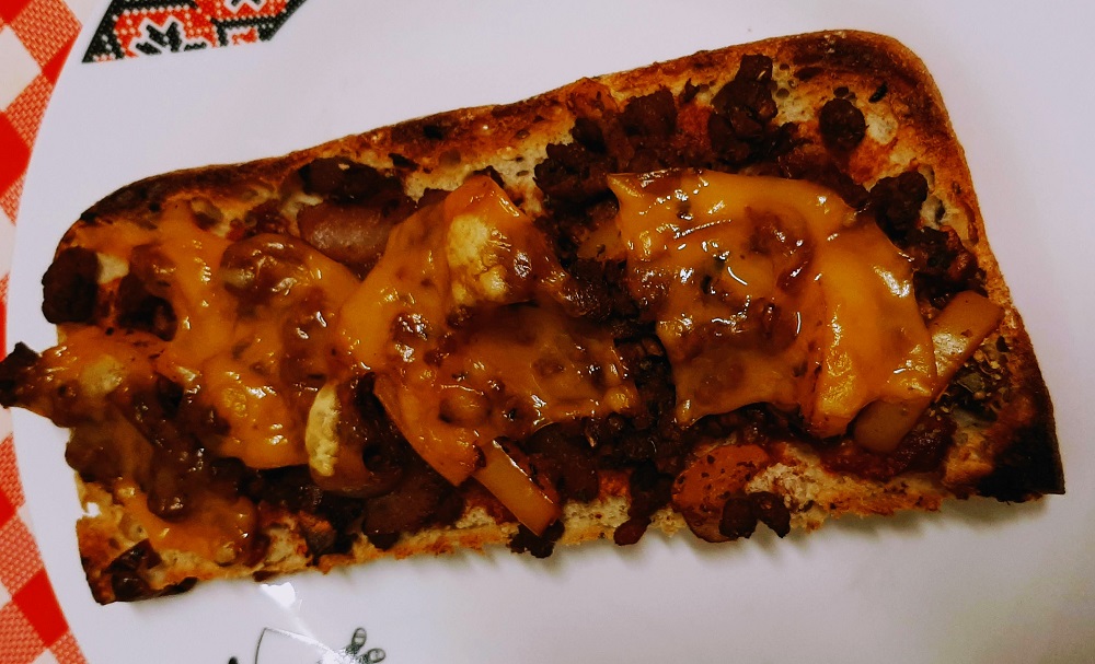 And there you have it, a nice quick and easy vegan lunch, which I’ve dubbed Vegan Bread-a-Rizza!