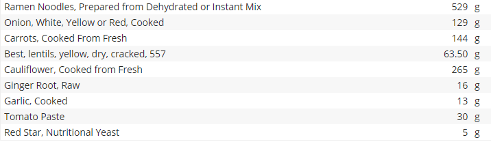 Note: I used more than 5 grams of nutritional yeast but the brand I use isn’t available on Cronometer.com, so I had to do the calorie-math to make sure it all worked out accurately.