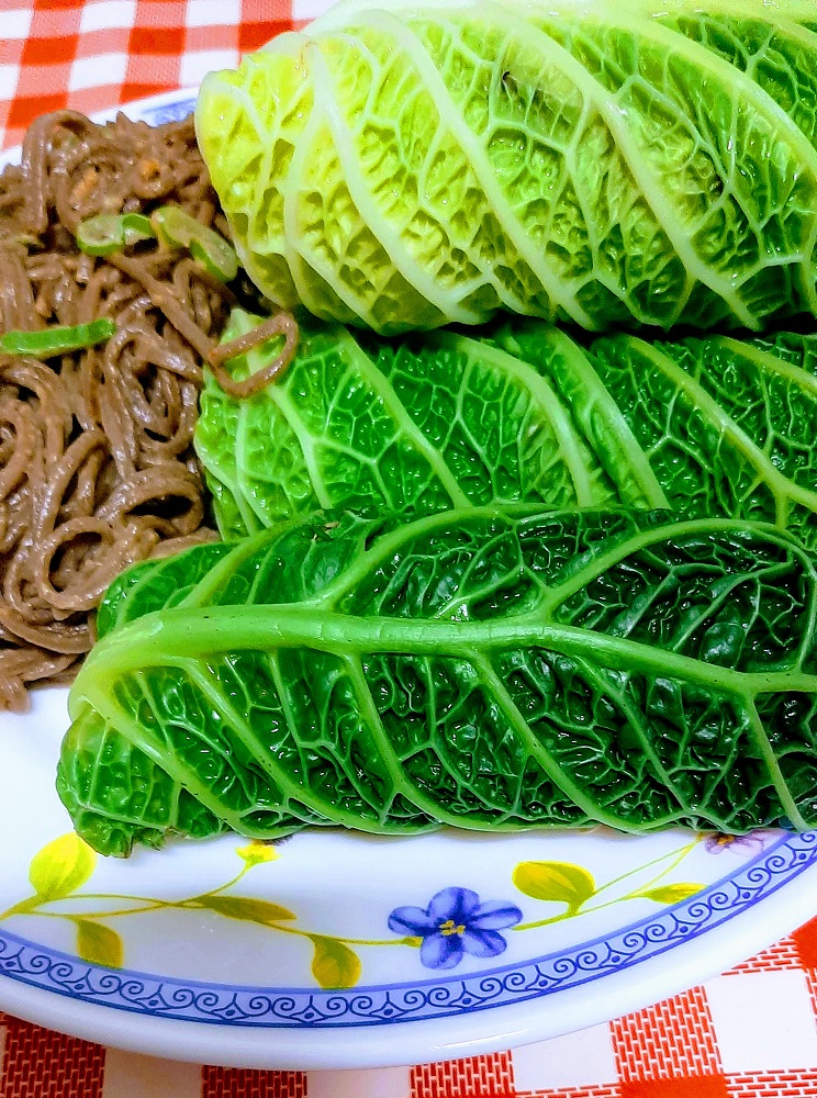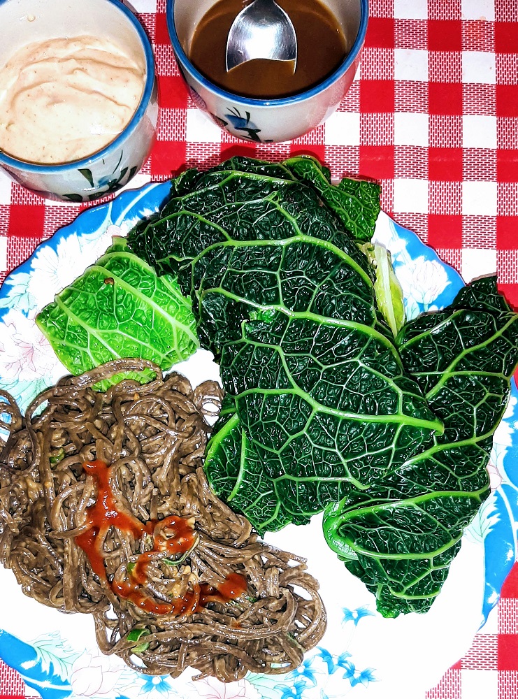 Then I was walking down the aisle of a very crowded Lidl and spotted a gorgeous head of Savoy cabbage. I had to have it, knowing it would be great for the wraps, not to mention a vegan soup or two. Maybe even a vegan ramen dish.