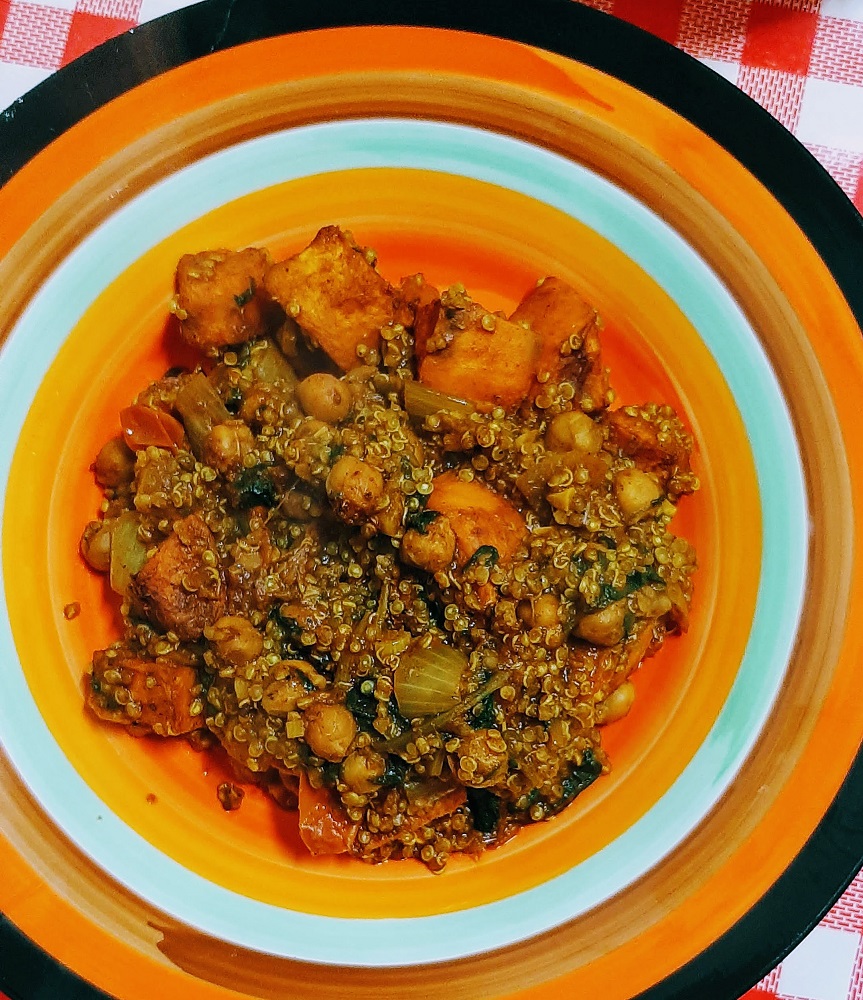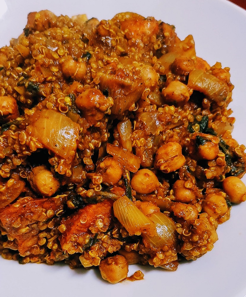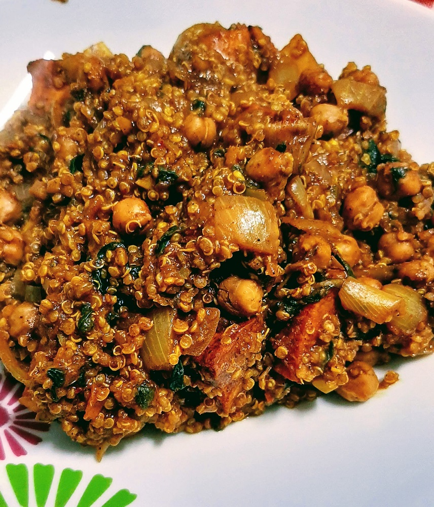 Toss the chickpeas and sweet potatoes with the quinoa mixture and serve.