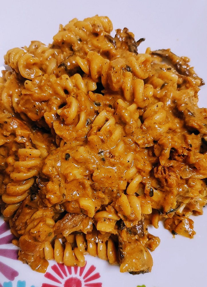 But this was my partner’s night to choose, so it wasn’t just mushroom stroganoff, there was some Naturli brand vegan mince added for good measure. So, let’s do this!