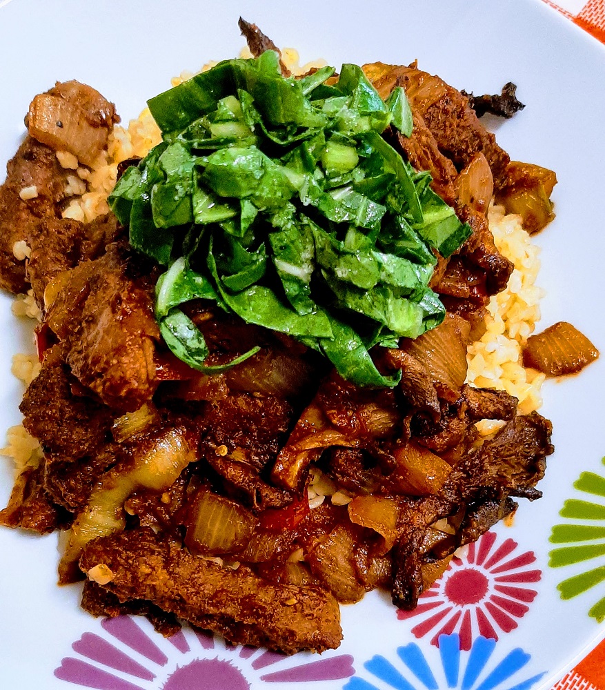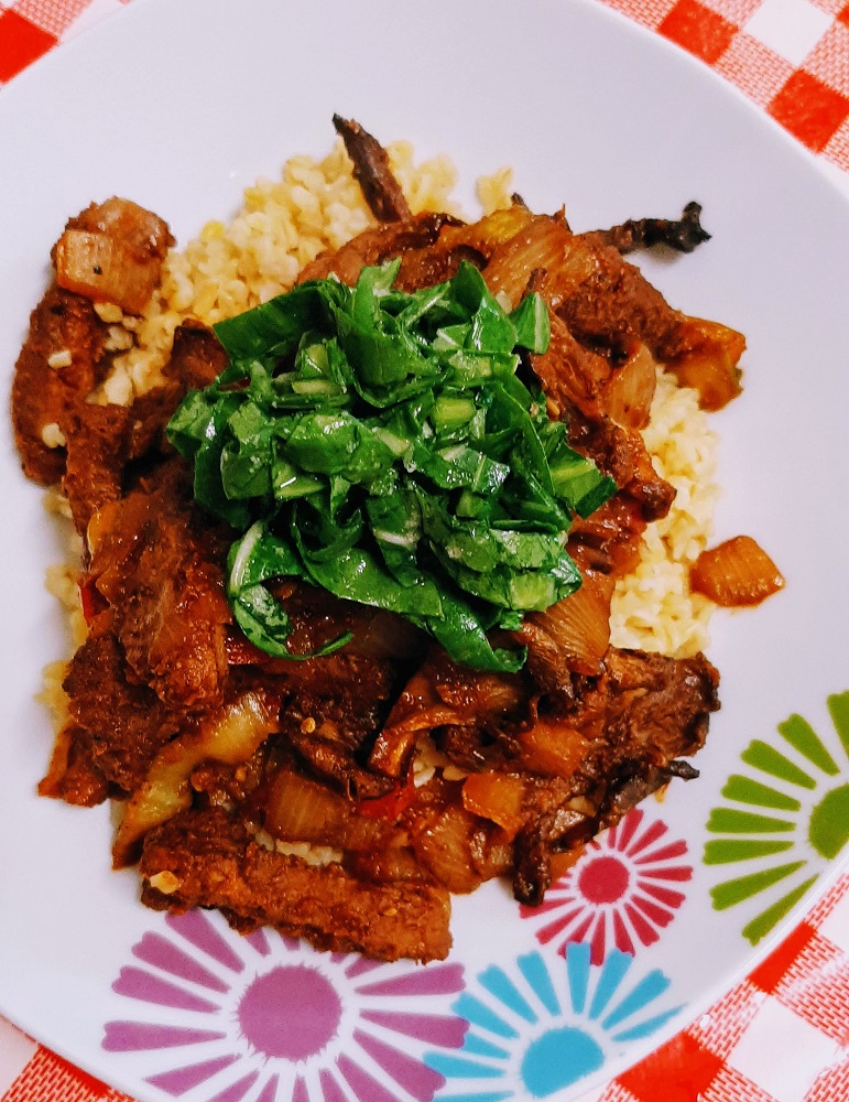 So, if you’re ready to get hot & spicy, grab your favorite vegan meat alternative, mushrooms, bulgur and bok choy leaves and let’s do this! Oh, and let’s not forget the hot sauce.