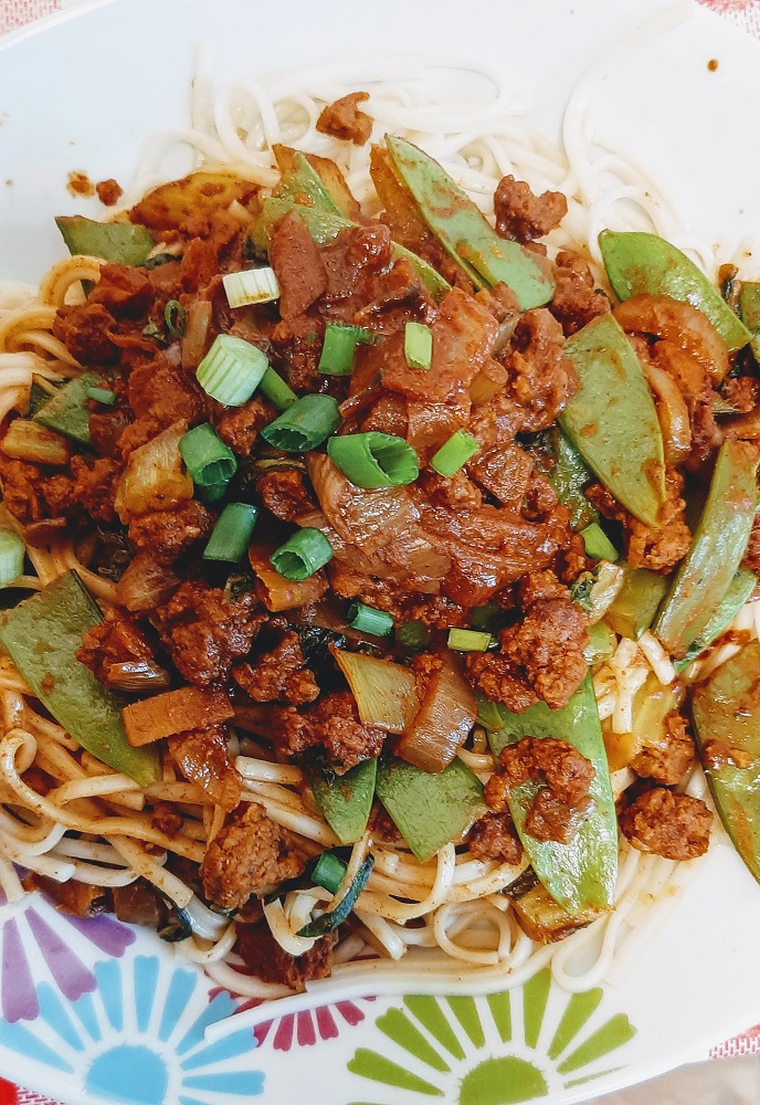 For the ramen: Cook ginger, leek, shallots & white part of bok choy in a skillet over medium-high heat. Add garlic, vegan mince and snow peas. Cook until snow peas soften and garlic is fragrant, about 5 minutes. If you’re not sure, just give a taste test, it’s chef prerogative to taste things, after all! Cook ramen or other noodles according to instructions on package.