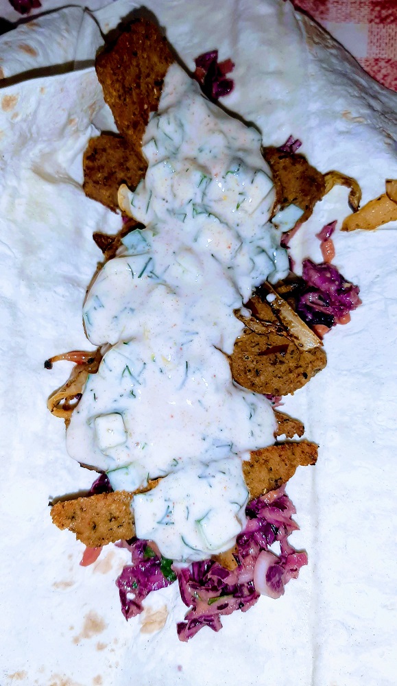 Top with vegan tzatziki sauce and get your nom-nom on!