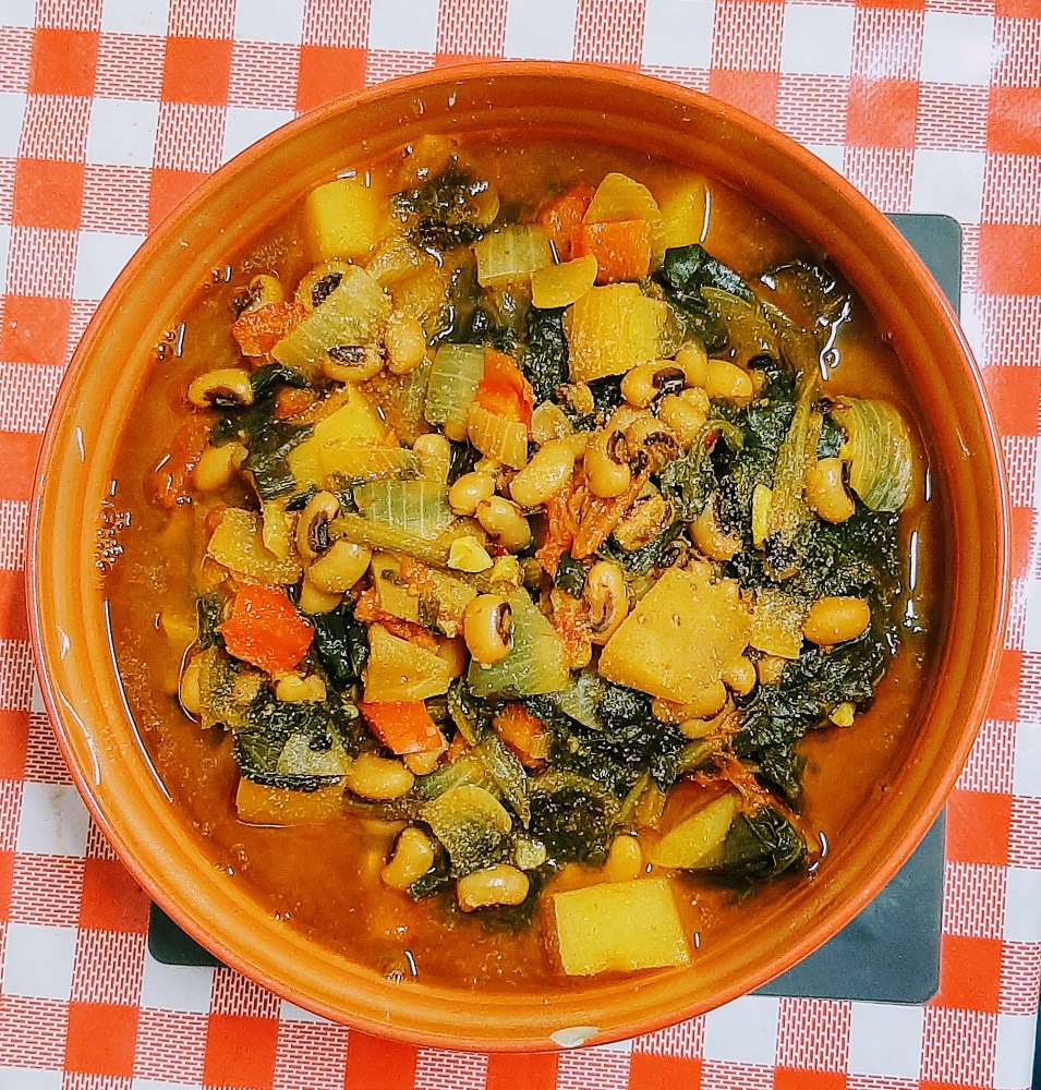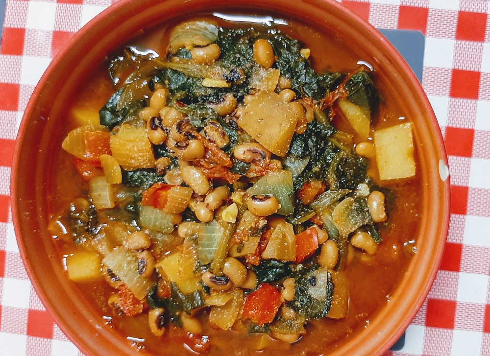 Not to mention the fact that black eyed peas are very difficult to find here so when I found them (jarred, boo) I grabbed them, held on tight and knew I had to make a southern style vegan bean stew.