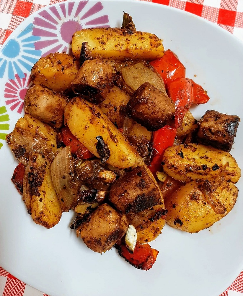 And there you have it, a delicious one pot vegan meal with vegetables, vegan sausage and one of the best things one art…POTATOES. Change up this meal by using different vegetables, vegan meat alternatives or even adding grains if you’re not dead set on a truly one pot meal.