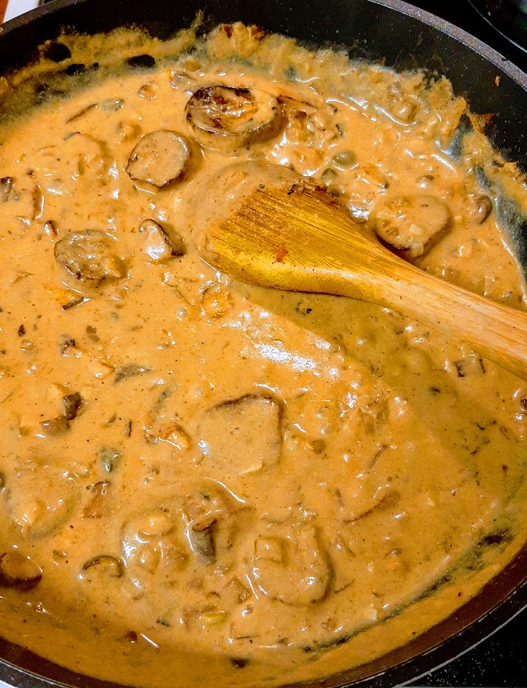 My impression of this dish is that I LOVE it. Even with the addition of the caper brine and the nori, it didn’t have a distinctly seafood flavor which is just fine by me. It was thick and heart and super shroomy, with excellent flavor. And since I’m no longer beholden to rules like no red sauce with seafood, I’m going to try it again with a spicy tomato sauce.