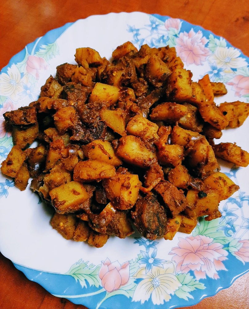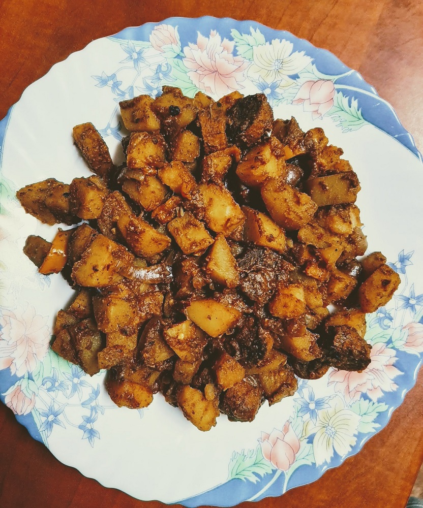If you want to make this an oil-free vegan recipe, be sure to keep some water or broth on hand because you’ll have to add it regularly to keep the potatoes from sticking. Or maybe I just need a new skillet? Something to consider.