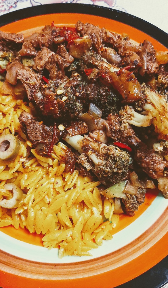 Step Four: Grains, baby! Orzo is delicious and it’s so hard to find here so whenever I find it, I grab a bag. But I think bulgur or couscous or even rice would go well with this flavor profile. Just remember, season the water with salt and whatever else you like to make sure the dish has a complete flavor profile.