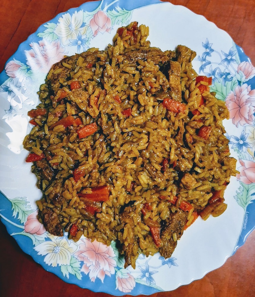 Well I started simple with a dish that was–relatively–easy to veganize. Afghan rice pilaf, called Kabuli Pulao.