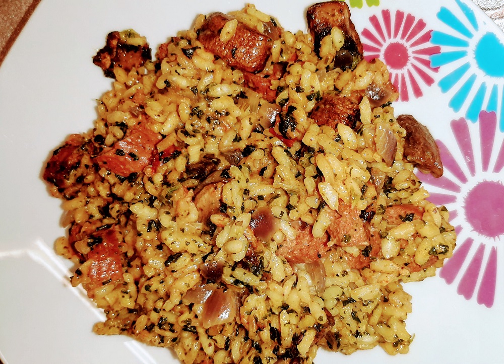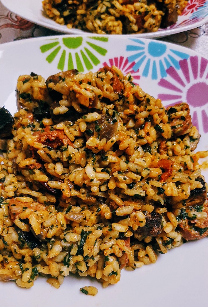 For today’s offering, we have vegan spinach, portabella mushrooms and spinach risotto.
