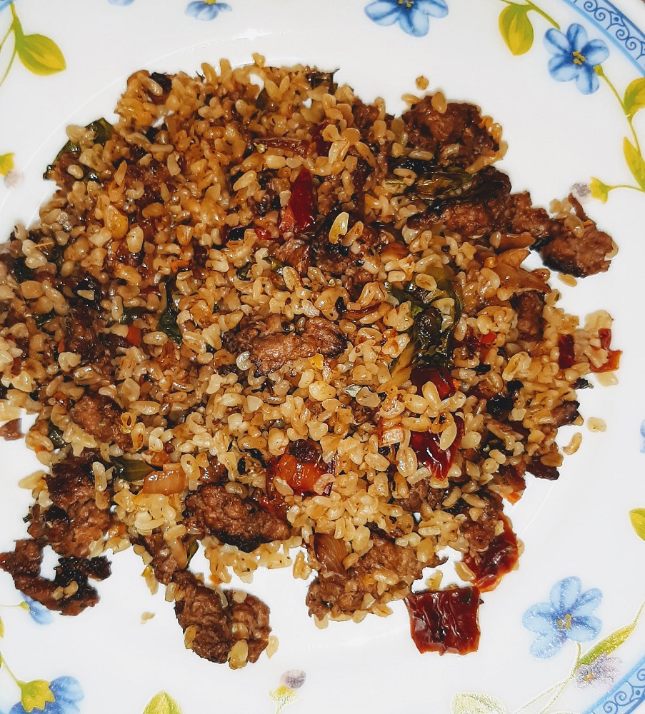 Don’t worry if you have leftovers. I sauteed the rest of it in a skillet and tossed it with the bulgur to create the perfect, fluffy, flavorful bed on which to sit your stuffed mushrooms.