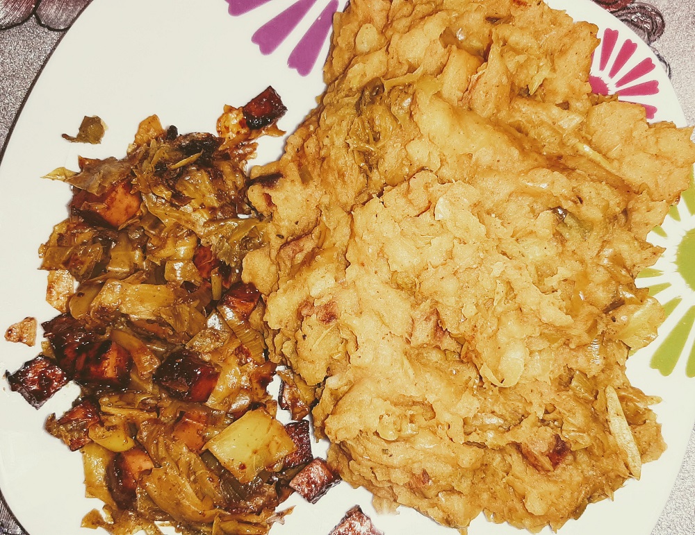 So the basics of Colcannon are: mashed potatoes, cabbage or kale.
