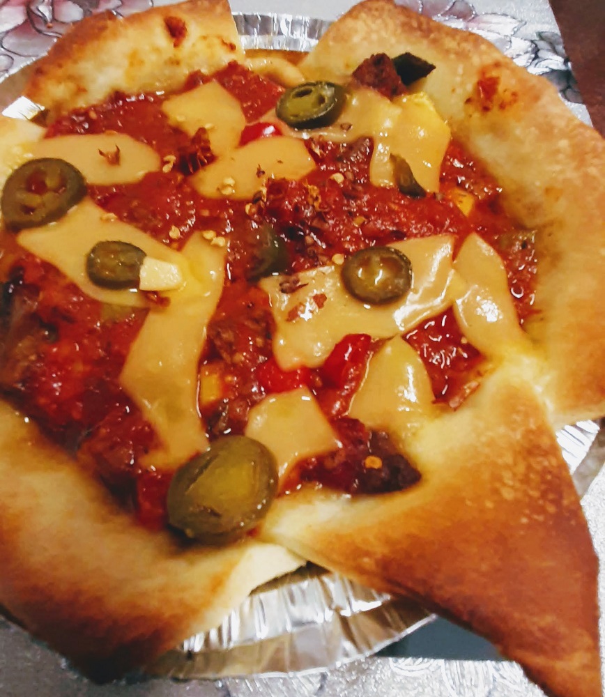Aluminum baking dish (what I used for personal sized vegan pizzas)