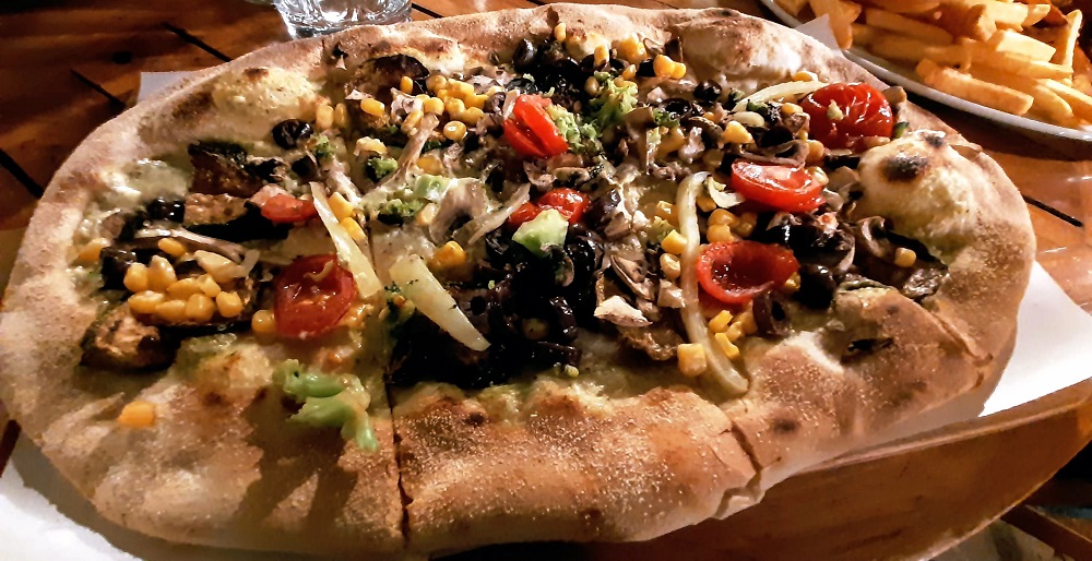 So imagine my surprise when we ended up at Old Times Pub in Tulcea and found a vegetarian pizza that had no cheese so it was actually vegan! Of course that was literally the only option because all other options contained some type of cheese or cream or cheese and cream.