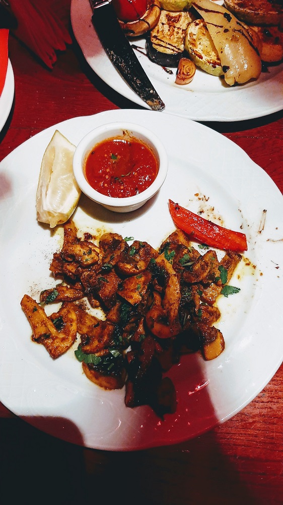 They have several starter options including my favorite, Tikka Masala Mushrooms which are grilled and seasoned to perfection. They also have hummus and the obligatory grilled vegetables, which they do better than most of the places I’ve eaten in Romania. There are a few curry dishes as well, which are really good and you can even order at different spice levels.