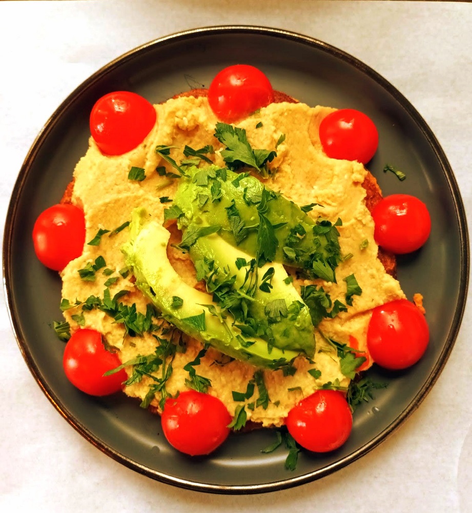 We got our meal started with a chickpea pancake with hummus, avocado and cherry tomatoes. It was…delicious. I avoided the avocado because it’s not my jam, which The Hubs appreciated.