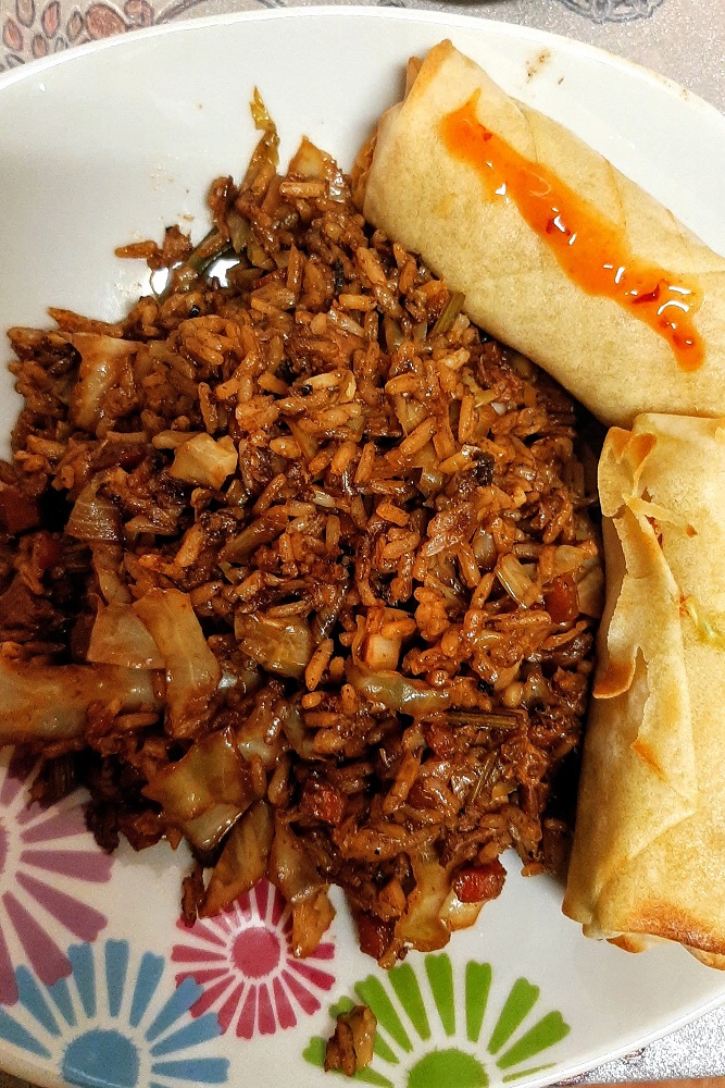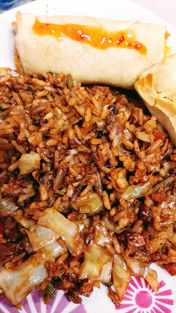 What goes well with vegan spring rolls? Well to be honest plenty of things but my Hubs requested veggie fried rice so that’s what we went with and it was pretty dang delicious. Mostly.
