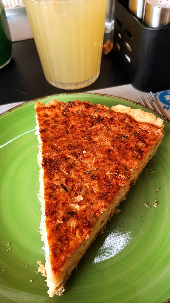 This time we chose the leek and tofu quiche and it was delicious. It needed a bit more seasoning which was easily achieved with the salt and pepper provided on the table. If there was a complaint it would be that the vegan quiche was cold. Next time I’m going to see if they can heat it up a bit before serving because I have a feeling that will highlight all the flavors much better.