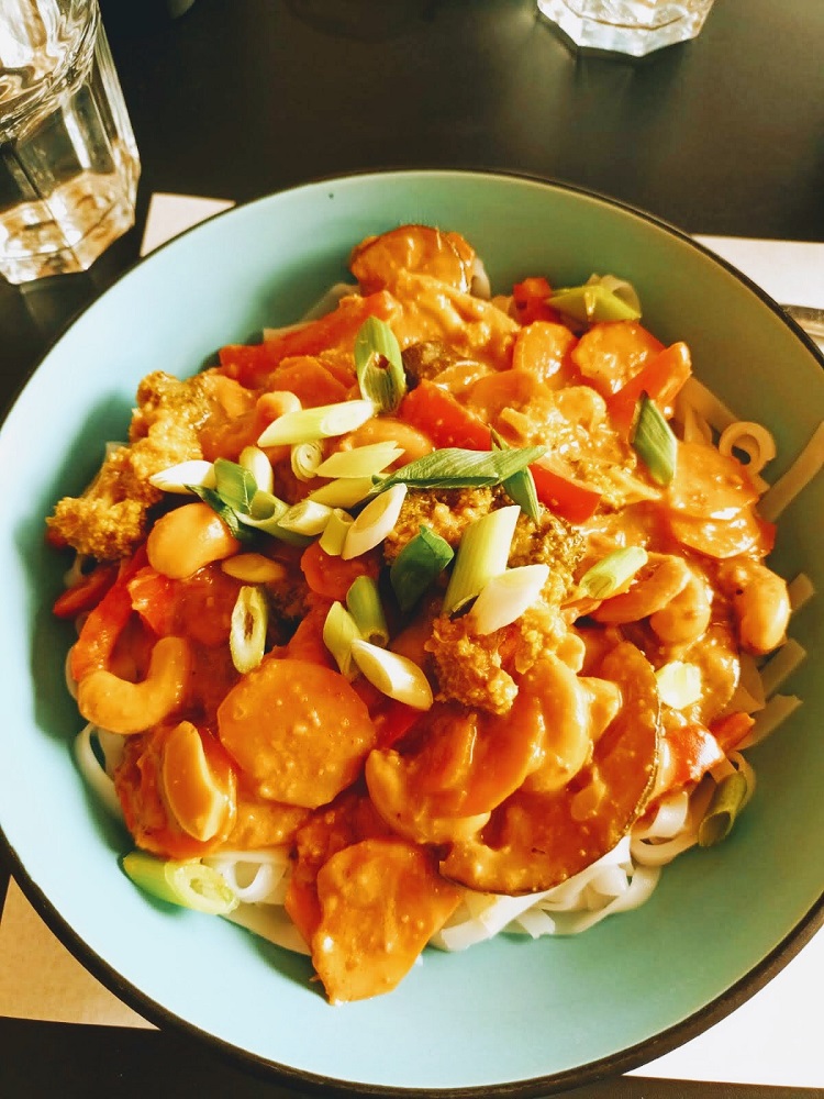 He ordered an Asian style vegetables and rice noodle dish. The vegetables were cooked to perfection and the cashew sauce was AMAZING. The noodles weren’t sticky and the dish had just a dash of sesame oil to bring it all together. I think I might have eaten more of his dish than my own. Even the zucchini was cooked perfectly, not soggy or watery like zucchini can be sometimes.