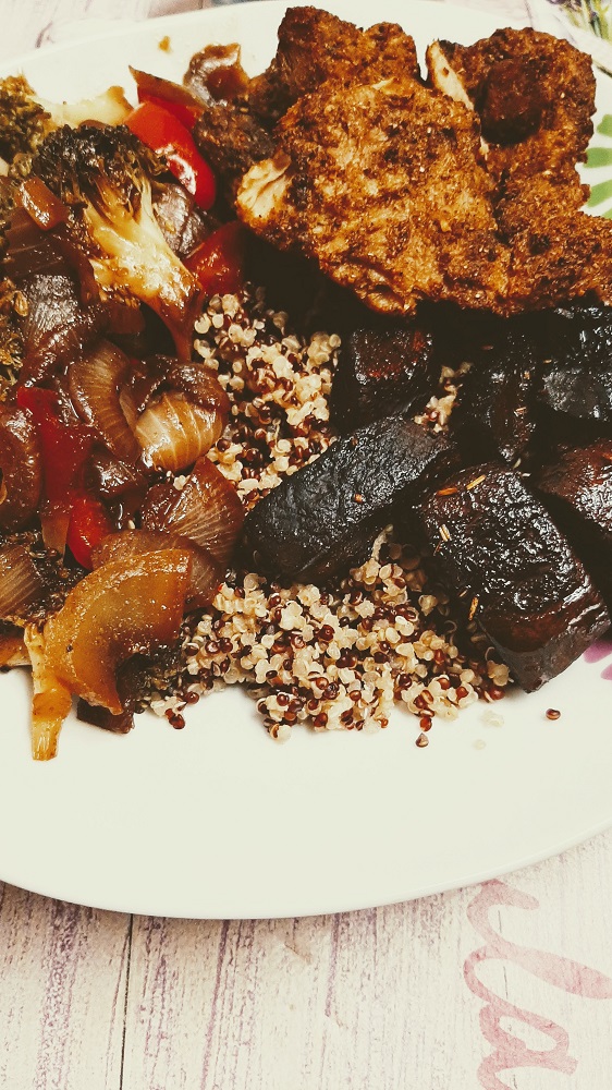 *Plate it up as desired. I did one on top of the grains and one plate with everything in a small pile all around the plate…the choice is yours!