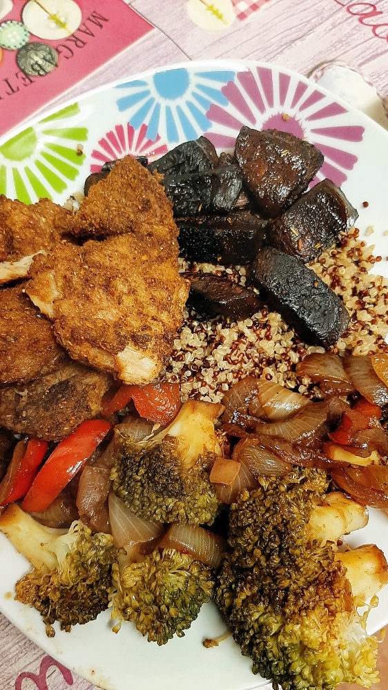 *Season TVP with oil, salt, black pepper, smoky paprika, garlic and turmeric. Cook in air fryer for 12 minutes on 200C.