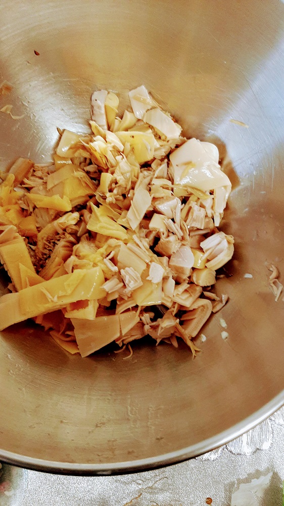 This is the banana blossoms after they were rinsed and chopped. They have a very nice texture and they soak up flavors beautifully.